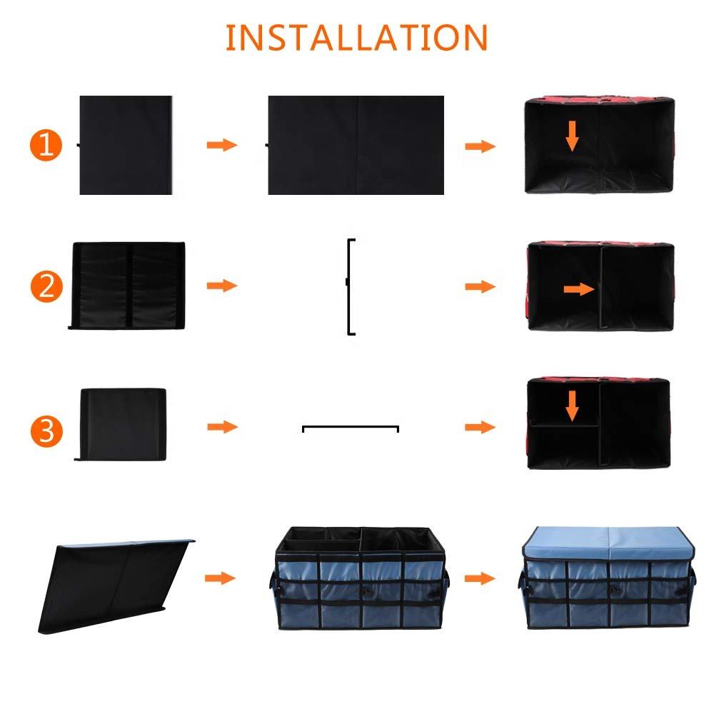 Casa / Prodotti / Borsa dell'organizzatore / Organizzatore di auto / borsa organizer per bagagliaio per auto SUV pieghevole impermeabile con coperchio organizer per bagagliaio per bagagliaio durevole