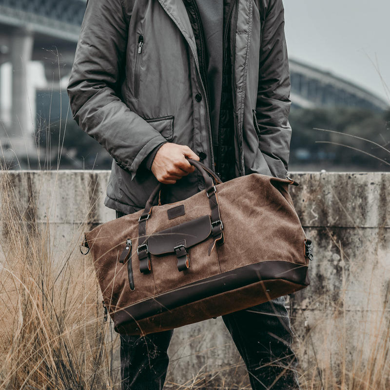 borsone da viaggio in pelle grande all'ingrosso uomo donna elegante borsa da weekend in tela da 35 litri con manico in pelle