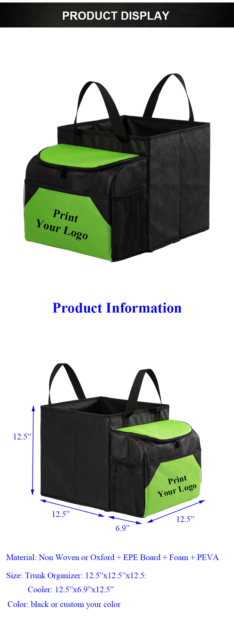 Casa / Prodotti / Borsa dell'organizzatore / Organizzatore di auto / organizer per bagagliaio pieghevole in tessuto non tessuto all'ingrosso con borsa termica isolante robusto organizzatore pieghevole per accessori per bagagliaio