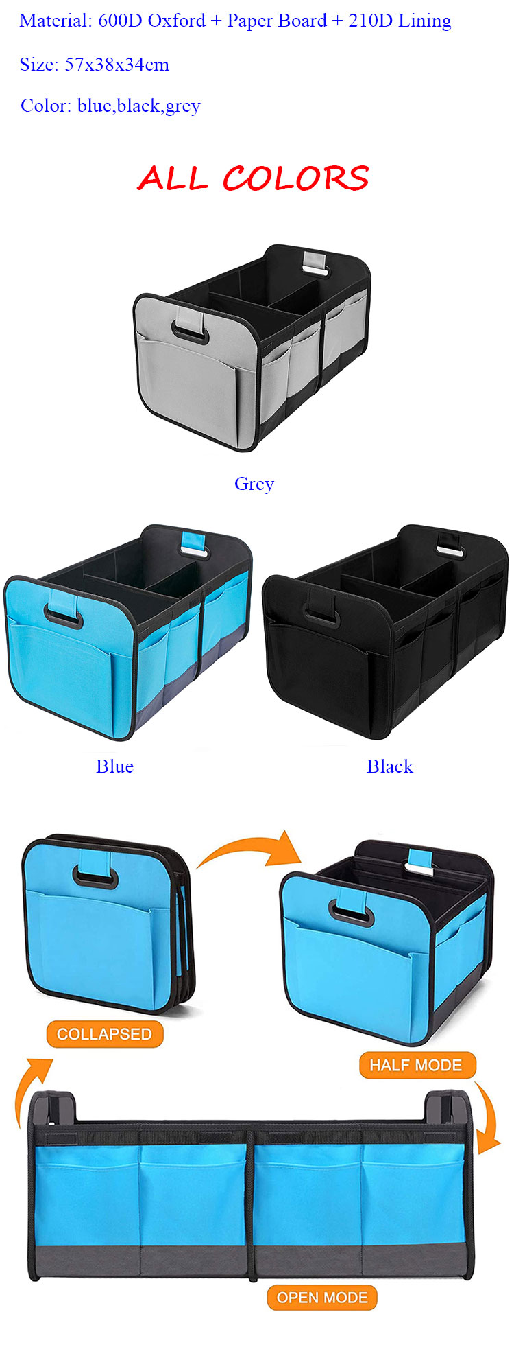 2. Materiale: È realizzato in 600DOxford + cartone + fodera 210D.
