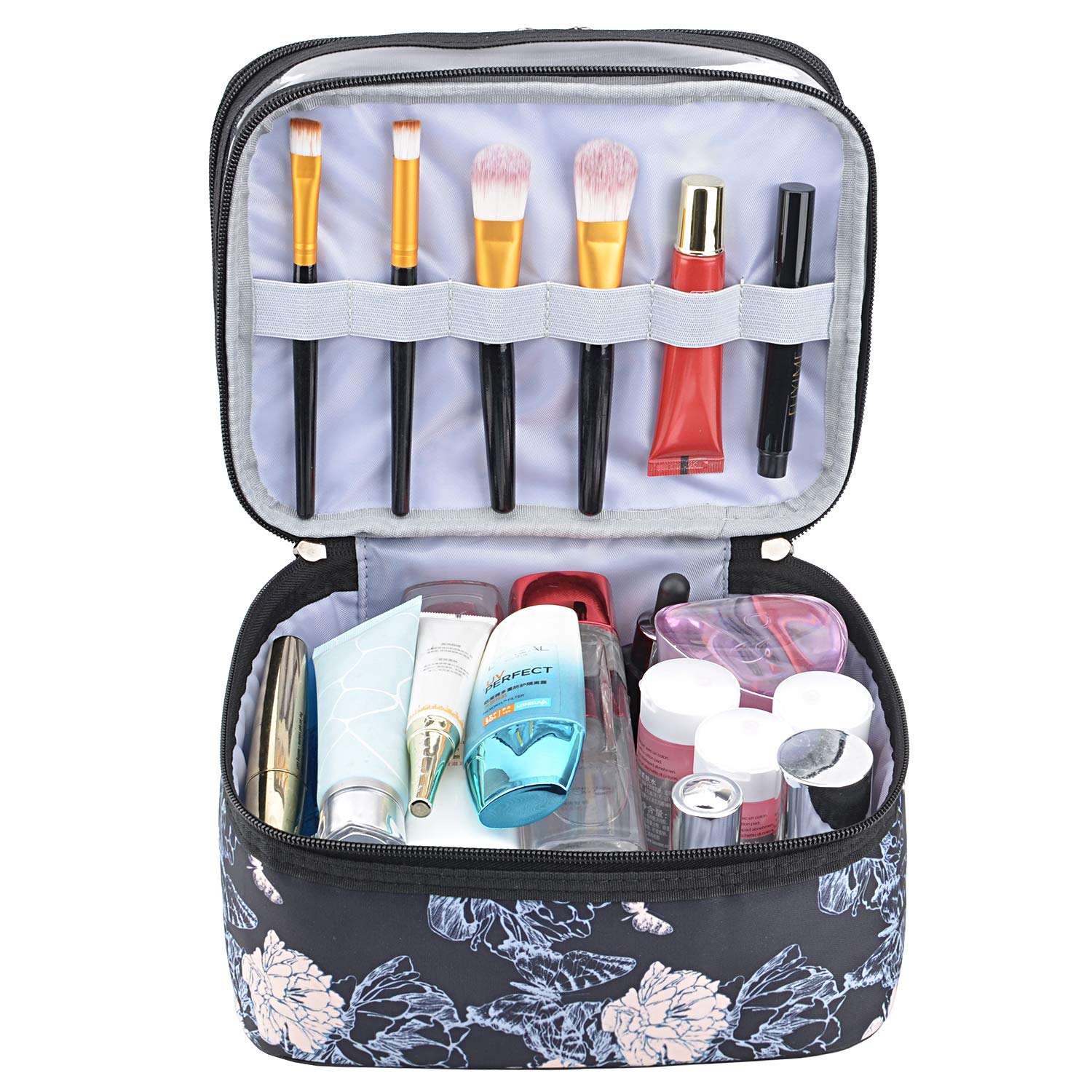 Casa / Prodotti / Borsa per cosmetici e articoli da toeletta / Borsa per cosmetici / pieghevole doppio strato trucco da viaggio porta pennelli organizer contenitore borsa con cerniera borsa da toilette da donna