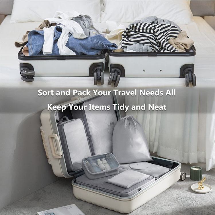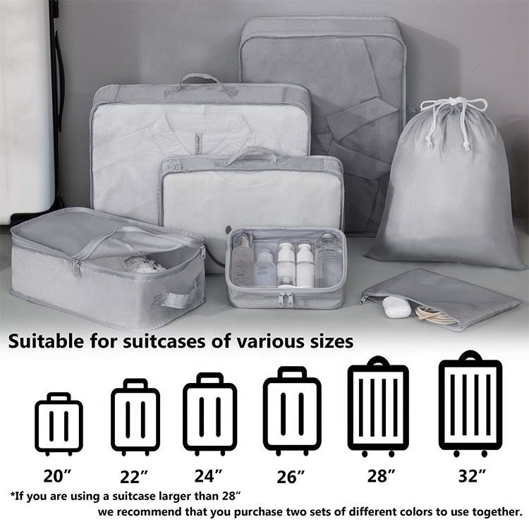 Casa / Prodotti / Borsa da viaggio / Organizzatore di viaggi / sacchetti per la conservazione della biancheria compressi da viaggio nello spazio di grandi dimensioni set da 7 pezzi durevoli set di cubi da imballaggio per organizer per valigie da viaggio