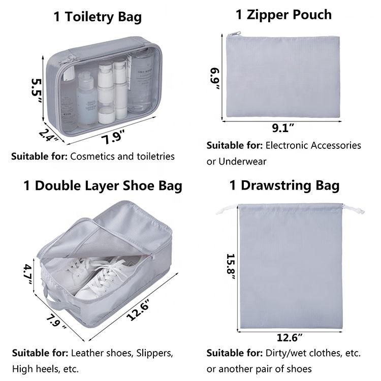 Commercio all'ingrosso 6 pezzi/set cubi di imballaggio con borsa per scarpe da viaggio set di cubi per organizer per bagagli da esterno portatili